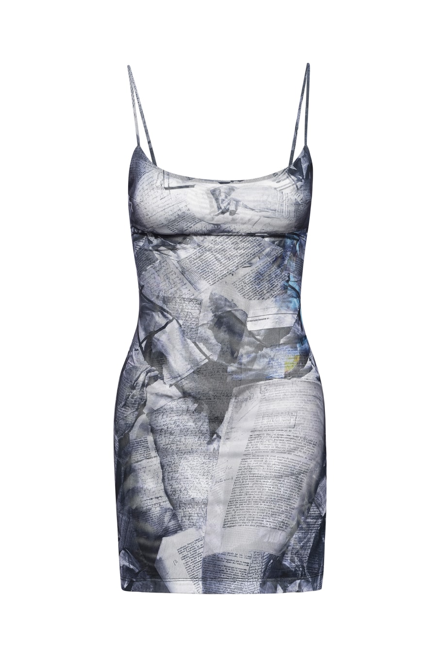 Our Anya Dress in Newspaper Trompe L'oeil is a mesh-lined fitted mini-dress, with a slit and hidden zipper on the side. Reimagined as a shorter version of our Thais dress, this mini-dress will accentuate your curves in all the right places.