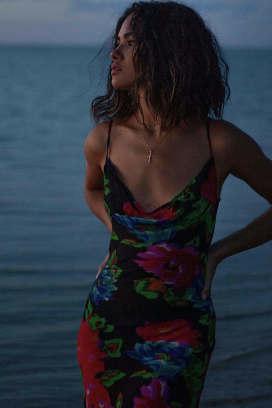 The Casablanca dress has been cut on the bias, a technique which allows fabric to mould to the body. This draped effect is super flattering, and integral to our brand DNA. All of our dresses are designed long to suit all heights and can be shortened as required.