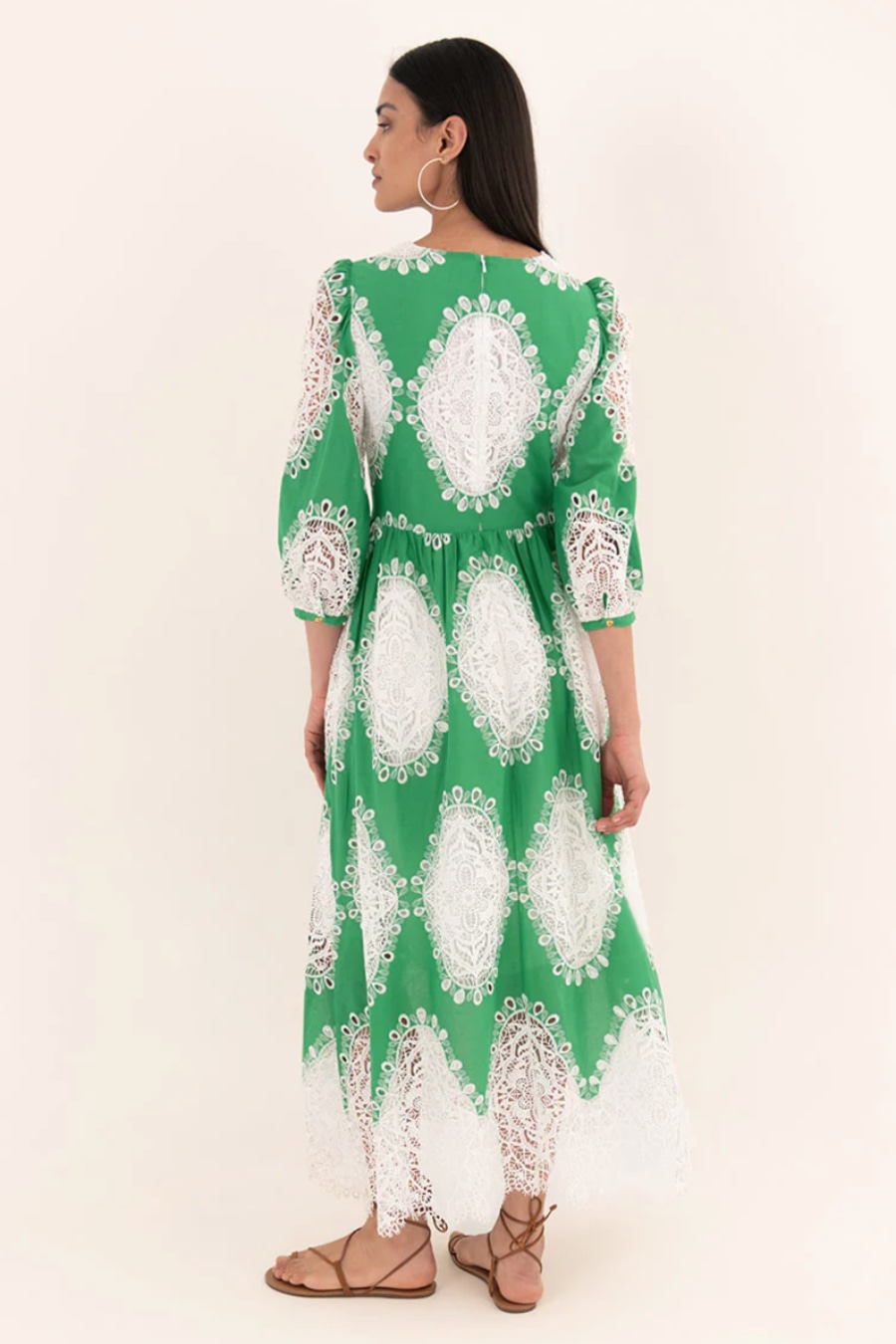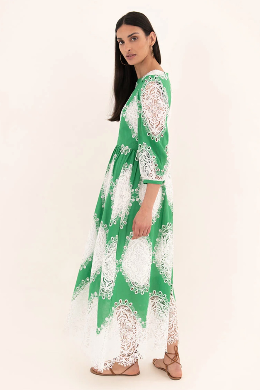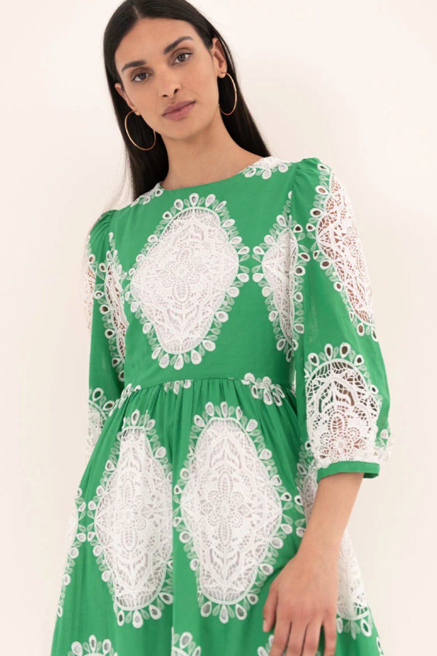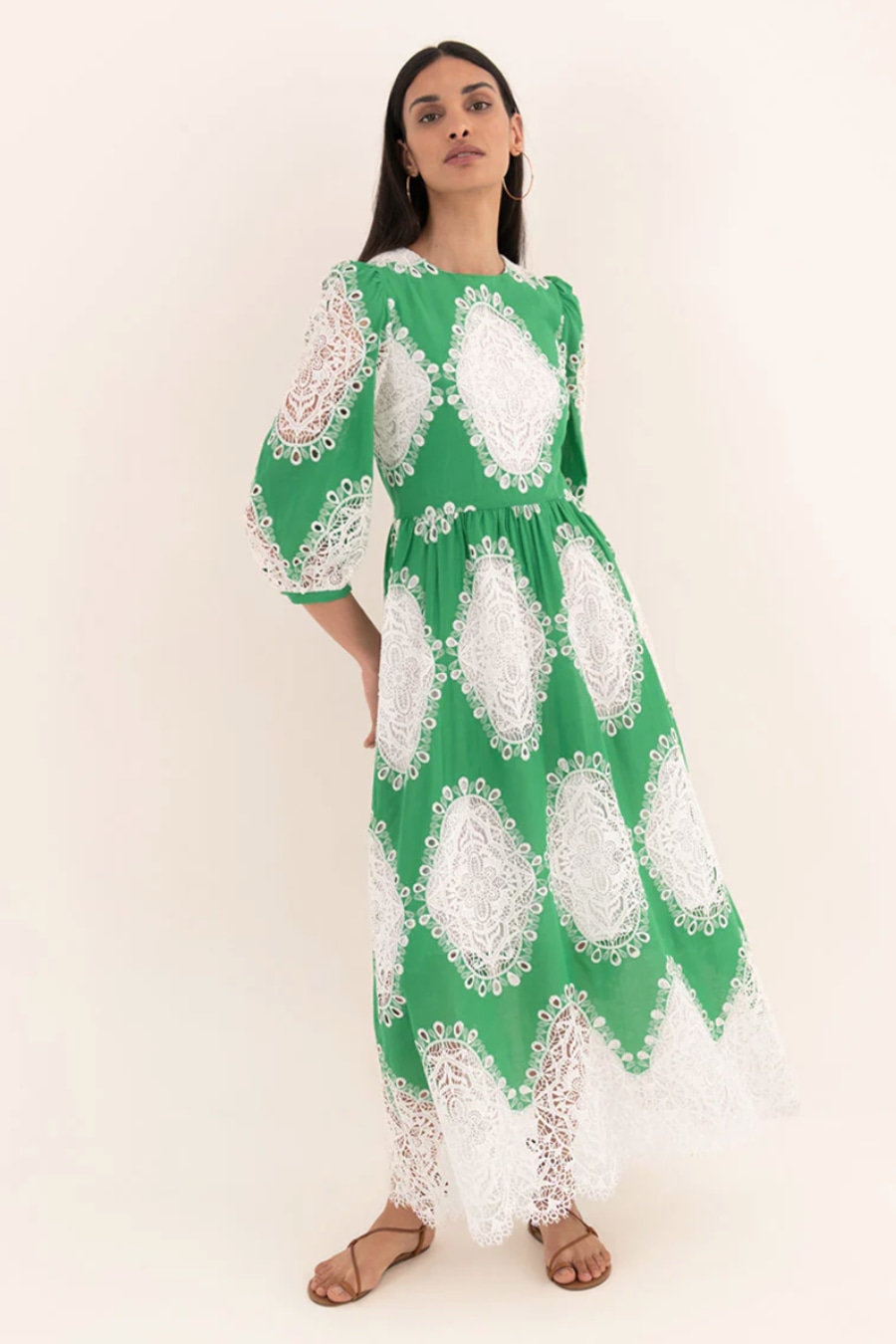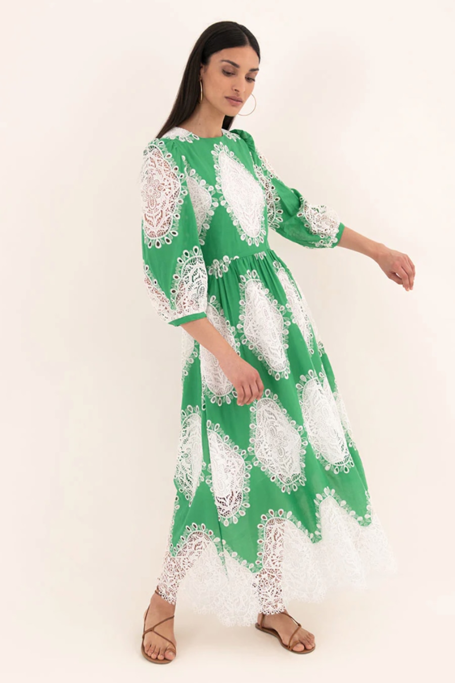 One of our bestselling pieces, the classic Constance can be worn to every occasion season after season. It is undeniably chic, elegant and feminine. It holds a timeless romanticism due to the intricate lace design and elegant style that is perfect for all ages. This season was inspired by joyful celebrations, being carefree and the free spirit of summer days, the Ibizan girl comes to mind, she is completely free under the sun. We gave the Constance an electric update as an ode to this, the perfect shade of emerald green.