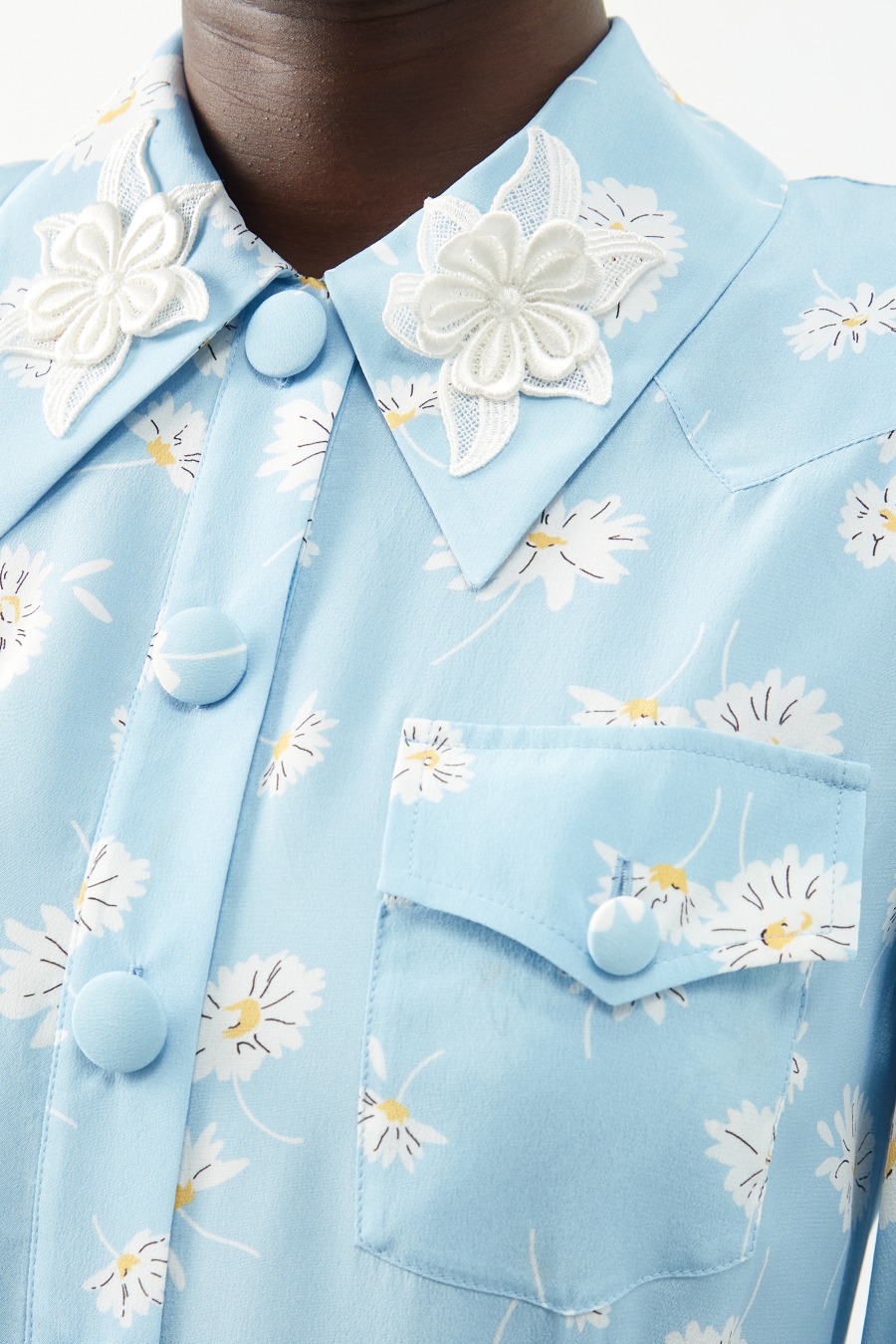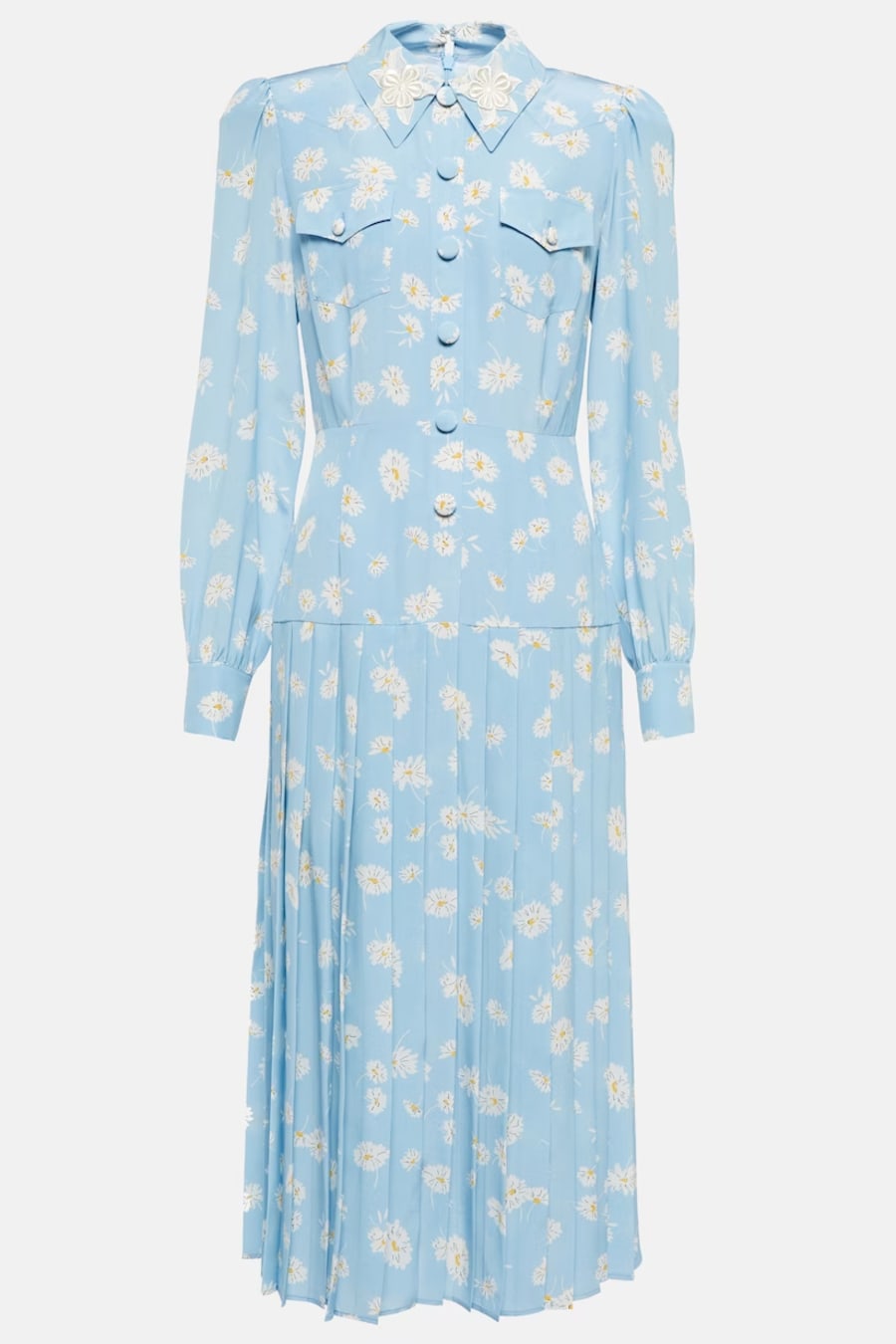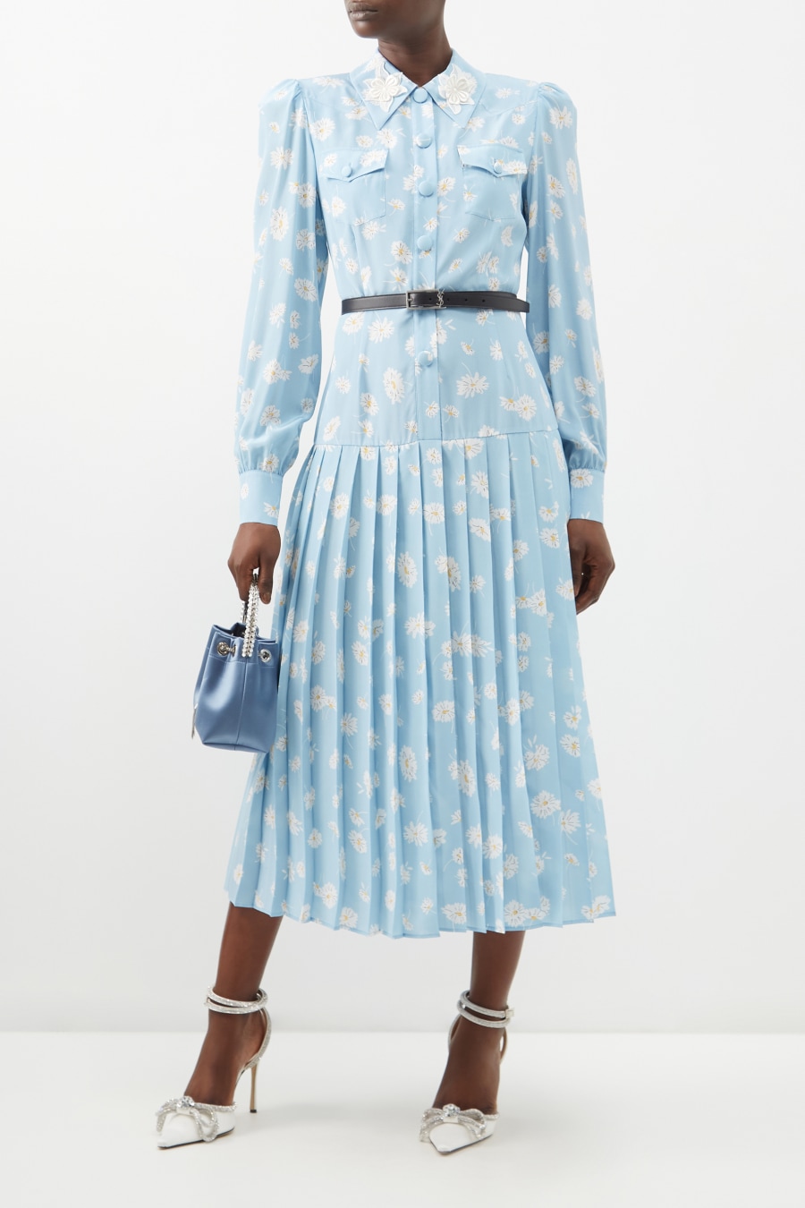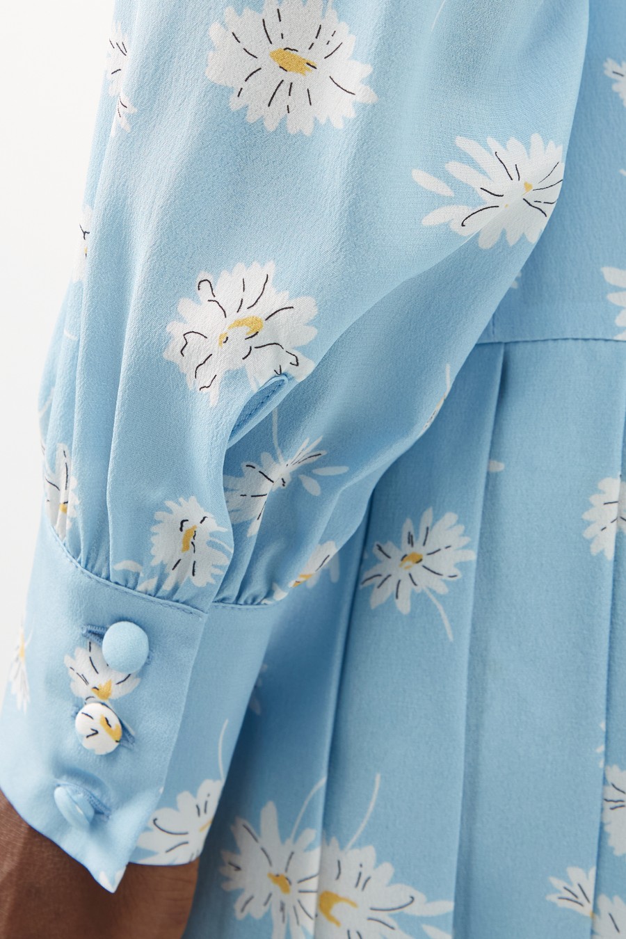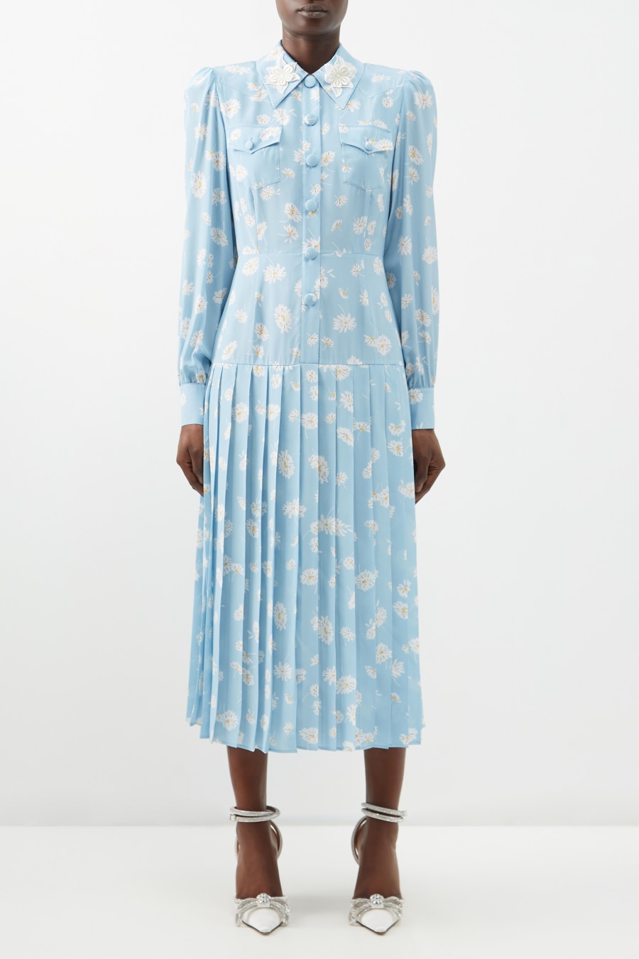 Daisy-print pleated silk-twill