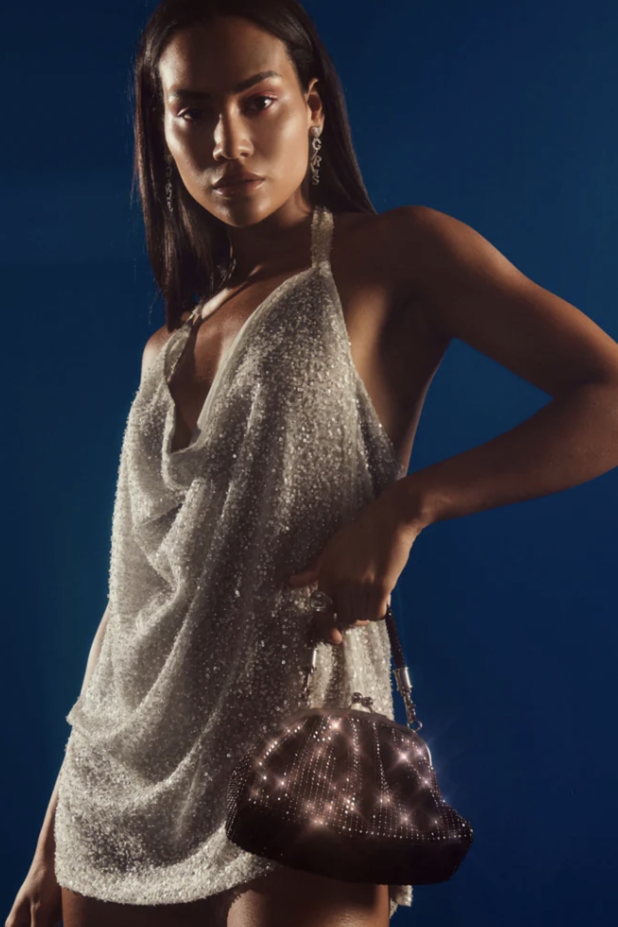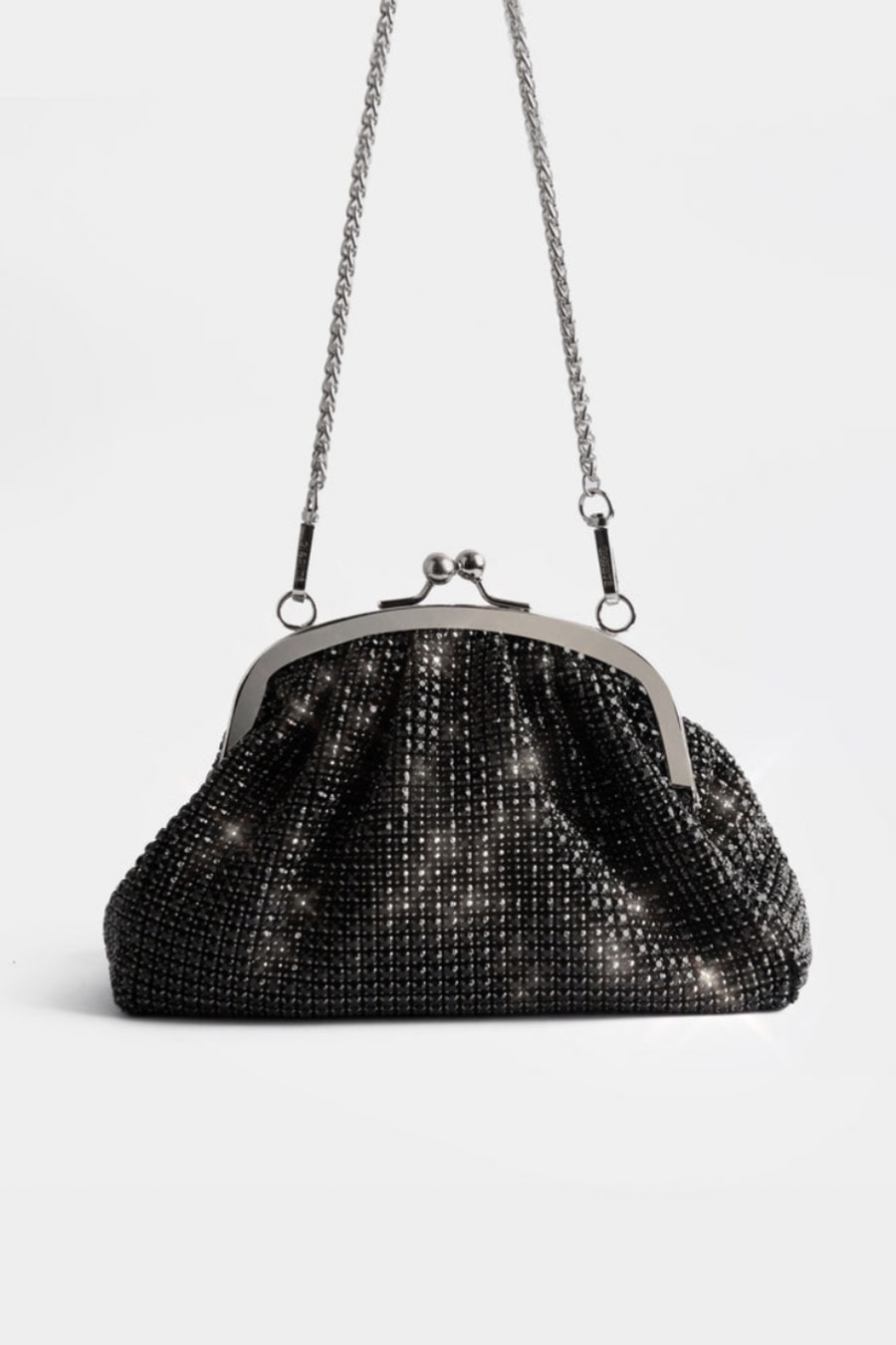 This eye-catching vintage-inspired handbag feels anything but outdated. Lima's unique pouch design is elevated by our high-quality rhinestone material and silver hardware. A classic handbag for your wardrobe, it can be used as a clutch, held by its handle during the night or worn crossbody for a casual day out. Made from 100% vegan and cruelty-free materials, Lima is the perfect size to fit your daily essentials.