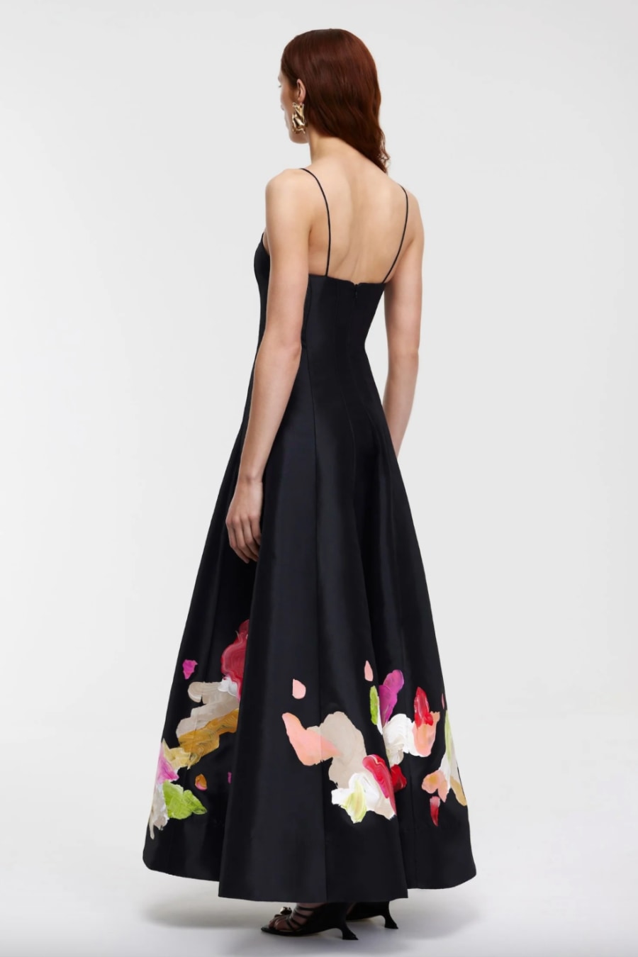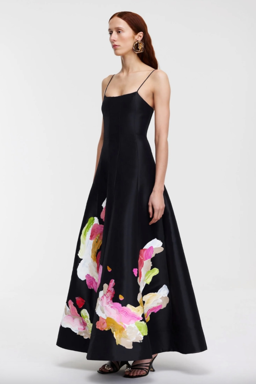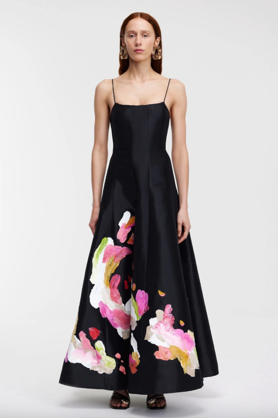 Introducing the Samstone Maxi Dress in Abstract Print, a true statement in design. The hand-painted print flows across the structured silhouette, creating a visually appealing moment. Bonded fabric adds volume and sharpness, while the full-length design is balanced by subtle details such as adjustable straps and discreet inseam pockets. Every detail is considered, delivering a bold yet sophisticated piece that is perfect for your next formal event.