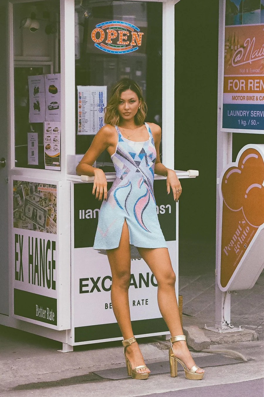 Look killer in this beaded fitted dress. We can't wait to wear this with strappy mules and a tan to dinner after a long day at the beach.
